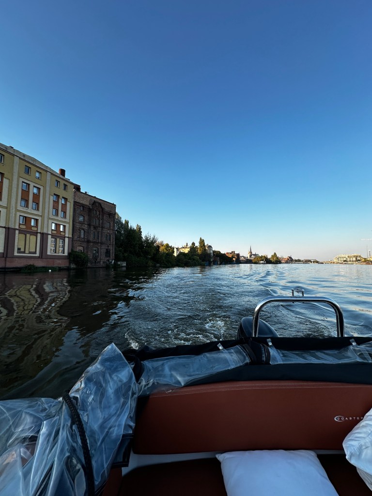 Wybierz się w wyjątkową podróż po wodach Odry i Jeziora Dąbie na pokładzie luksusowej motorówki Coaster 600DC. Trasa wiedzie przez przemysłowe klimaty Stoczni Szczecińskiej, malownicze kanały i dzikie zakątki Odry aż do fascynującego wraku betonowca – reliktu z czasów II wojny światowej. Na miejscu zatrzymamy się przy wraku – idealnym do zdjęć i krótkiego postoju, podczas którego możesz rozkoszować się widokiem i ciszą rozległego Jeziora Dąbie.